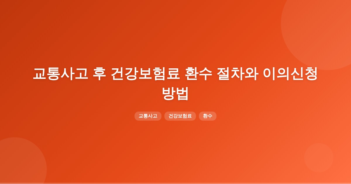 경미한 교통사고 후 건강보험으로 치료를 받은 경우, 국민건강보험공단은 특정 조건에 따라 치료비를 환수할 수 있습니다. 특히, 고의 또는 중대한 과실이 인정되면 환수가 이루어질 수 있으므로 이의신청 절차를 잘 이해하고 준비하는 것이 중요합니다.